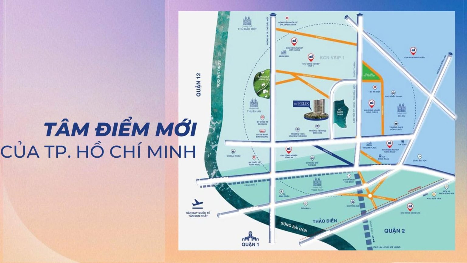 The Felix Thuận An là dự án do C-Holdings (Cường Đô La) phát triển làm chủ đầu tư, sau khi thành công vang dội với C Sky View & The Maison thì đây là sản phẩm tiếp theo tung ra thị trường vào quý 4/2023. The Felix có vị trí mặt tiền đường Nguyễn Du cách TP. HCM chỉ 15 phút di chuyển là cơ hội sở hữu nhà ở dành cho khách hàng đang làm việc tại Sài Gòn mà chưa đủ tài chính, hơn nữa là cơ hội đầu tư sinh lợi nhuận rất lớn cho nhà đầu tư. còn là điểm đến hấp dẫn cho những ai đang tìm kiếm một chốn an cư lý tưởng trong một thành phố đang phát triển nhanh chóng. Nơi nâng niu phong cách sống thời thượng, cân bằng Sống – Làm việc – Tận hưởng tối ưu dành cho cộng đồng cư dân hiện đại. Trân trọng từng khoảnh khắc, cải thiện liên tục, sống tối giản để tìm hạnh phúc và tỏa sáng theo cách riêng. Đó cũng chính là tinh thần mà căn hộ The Felix mang đến Thuận An, kết hợp hài hòa giữa văn hóa Việt và phong cách sống và cũng là kiệt tác được thiết kế hoàn hảo, tinh tế trong từng đường nét, được coi là biểu tượng mới của thành phố Thuận An. Căn Hộ The Felix còn mang đến không gian sống hoàn hảo và là xu hướng đầu tư bất động sản hấp dẫn năm 2025.